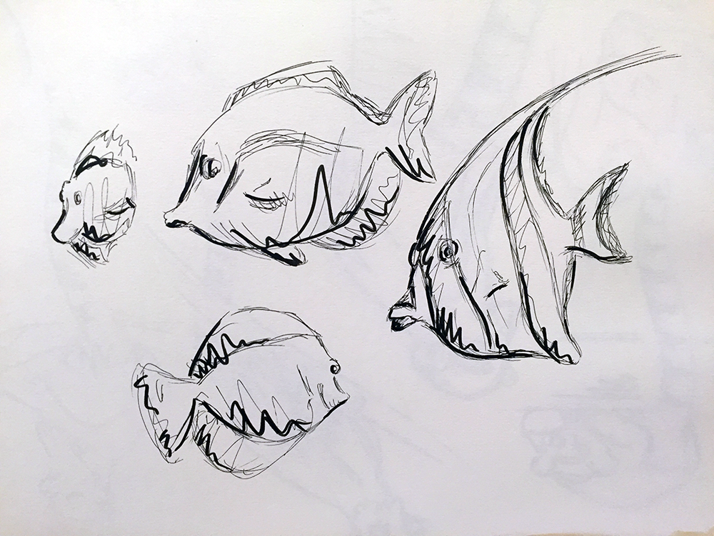 To help aid with my fish/duck/aquatic life anatomy, I went to various different aquariums; Bristol, Birmingham and Bournemouth. These are some quick sketches I did while walking round and observing the movement.