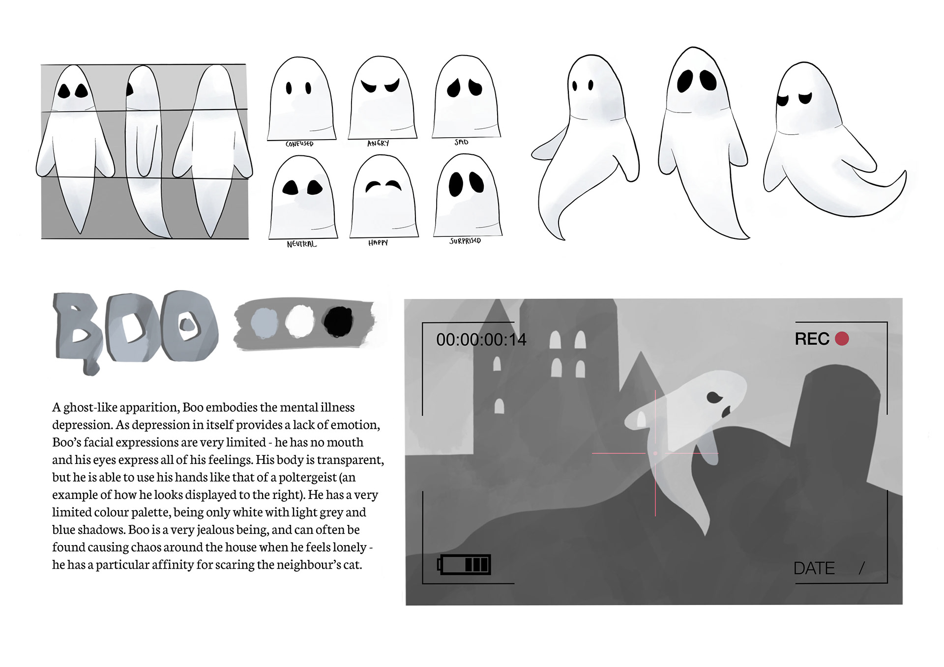 Boo is a character I designed to go alongside Blue, the land octopus. He is the creature embodiment of what I perceive my depression to be.